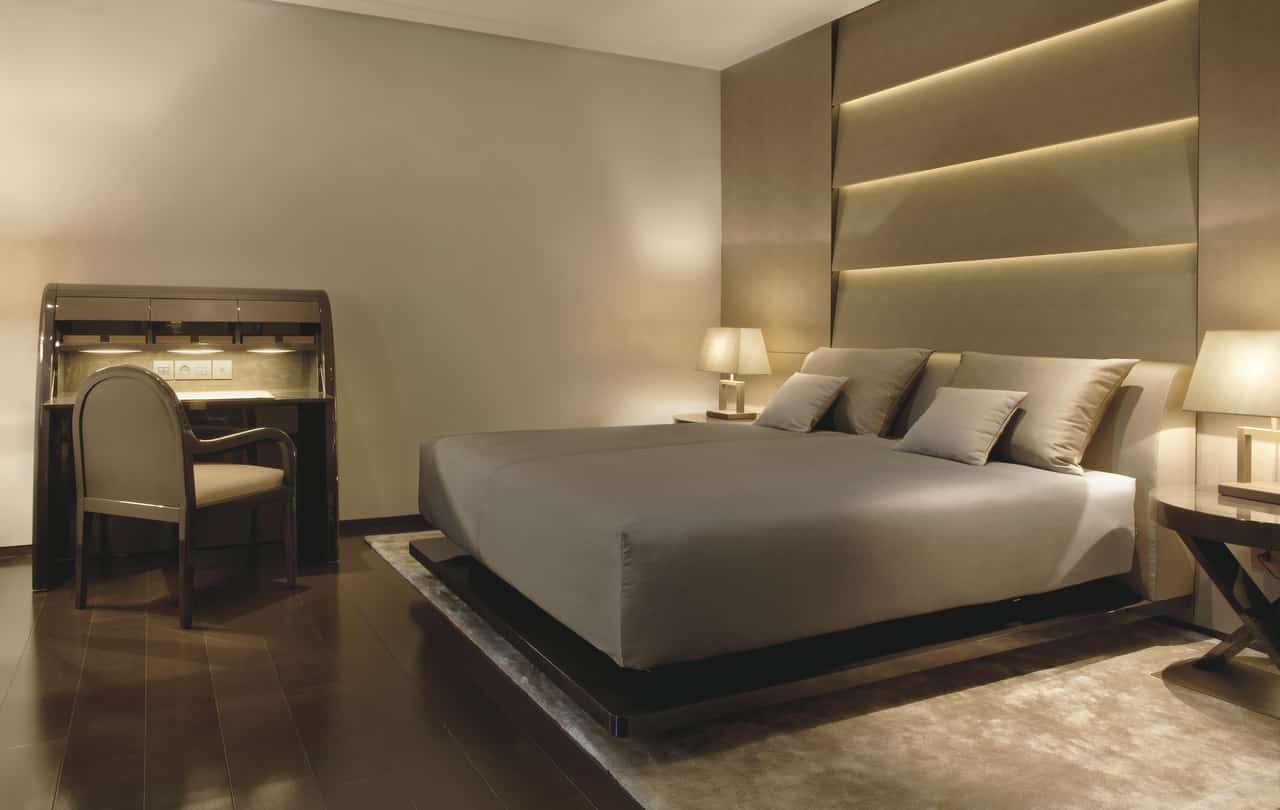 Tutti gli arredi condividono la filosofia di design di Armani Casa. Ma sono stati specificamente ideati in una gamma di finiture che rispecchiano il mood dell’epoca del palazzo: dagli eleganti divani lineari rivestiti in tessuti ricercati, alle testate dei letti in legno retroilluminate.