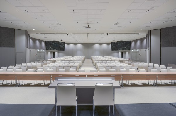 Il primo piano del Centro Congressi ospita l’area ristorante/bar di 1.300 m2 (capienza max 1.500 persone), e l’area espositiva di 950 m2. Al secondo piano ci sono 9 sale meeting (da 150 a 1800 partecipanti), utilizzabili per le sessioni plenarie. Al terzo piano infine altre 16 sale meeting (max 65 partecipanti).