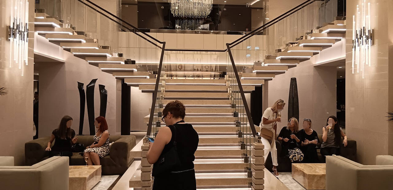 La nuova nave del gruppo Msc crociere è a tutti gli effetti un hotel di lusso galleggiante dove il rapporto tra ospiti e staff di bordo è di 1,25 a 1. In pratica: per ogni 5 ospiti ci sono 4 membri dell’equipaggio.