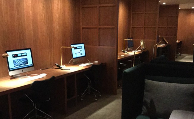 La corsia più lenta, invece, presenta un ampio salotto con ampie vetrate e pareti in legno smaltato dove rilassarsi osservando la frenesia dell’aeroporto comodamente seduti sulle celebri poltrone Solo Chair, progettate appositamente per il comfort e il benessere dei passeggeri della Compagnia di Hong Kong.