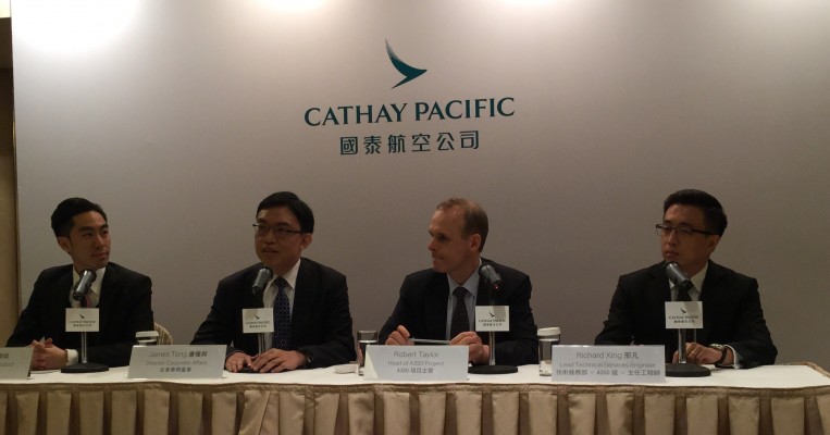 L’A350-900 di Cathay avrà una “ configurazione a tre classi, 38 posti in business, 28 in premium economy e 214 in economy, per un totale di 280 posti” spiega Taylor, per passare a decantare poi ii plus dell’ultimo arrivato in casa Airbus: “Oltre allo spazio maggiore, anche verticale e nei gavoni per i bagagli di bordo, è anche il 50% più silenzioso degli odierni jet, ha finestrini panoramici è un sistema di luci a Led che possono cambiare a nostra scelta. E poi l’aria è più fresca, e viene cambiata ogni tre minuti, è la pressurizzazione è per 6000 piedi contro gli 8000 normalmente. È costruito quasi interamente con materiali compositi, come la fibra di carbonio, ad esempio le alti che si adattano in volo, con parti in titanio, e solo il muso in alluminio, usa l’avionica più recente e motori Rolls Royce Trent. Insomma tutto questo comporta Costi operativi più bassi del 25% rispetto agli aeromobili dell’odierna generazione” specifica Taylor.