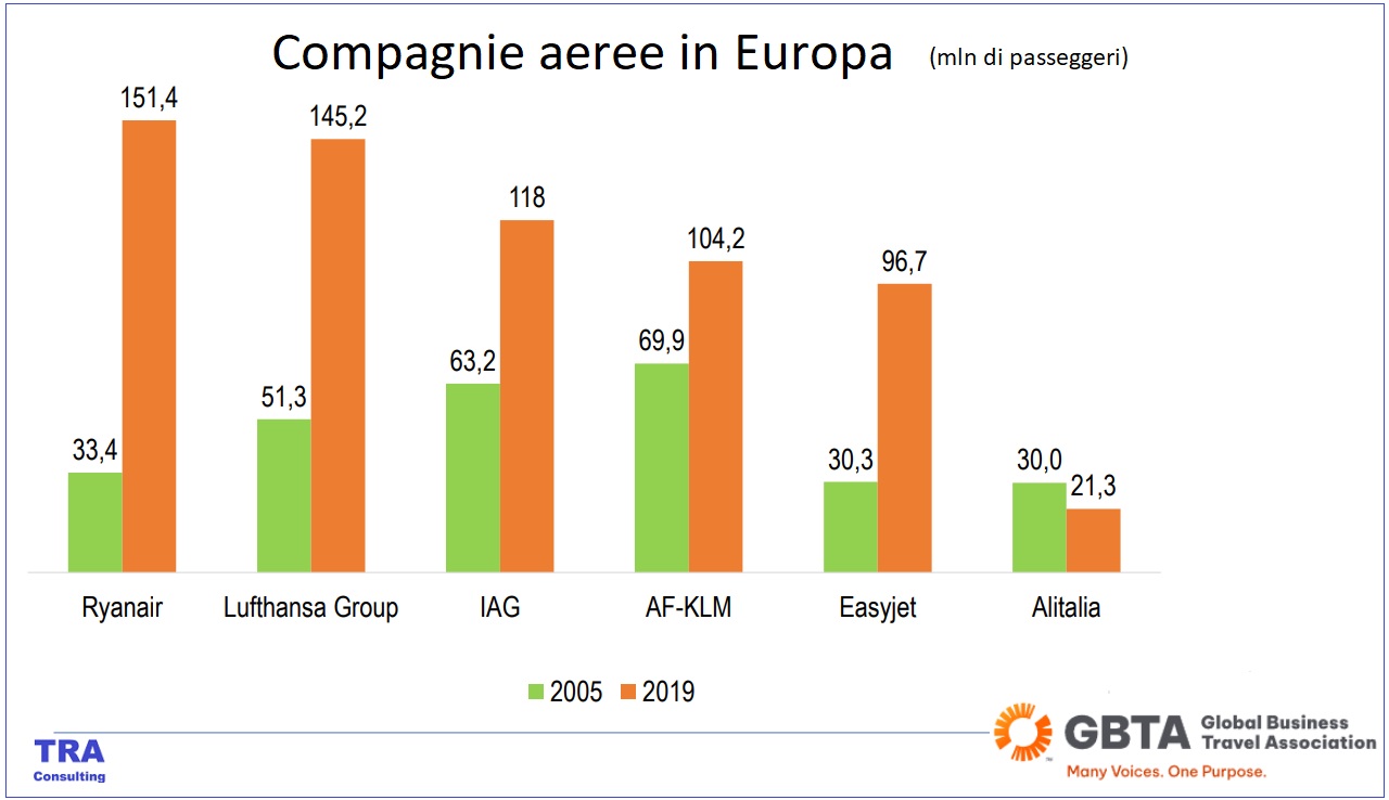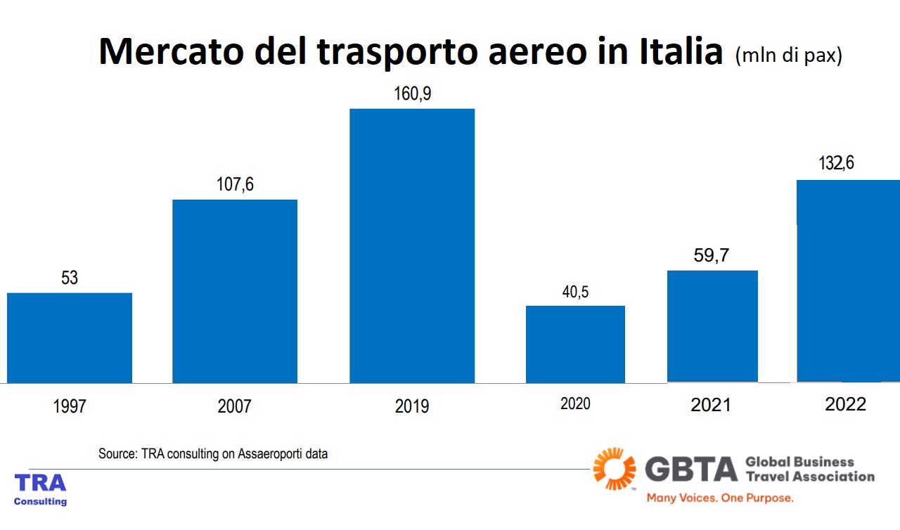 Ed è proprio in occasione di un evento Gbta Italia che, con main sponsor Turkish Airlines e con sponsor tecnici Bwh e Siap, Andrea Giuricin ha passato sotto la lente tutto il comparto. E, nell’analisti sul futuro del trasporto aereo in Italia, non potevano mancare i dati e le tabelle.