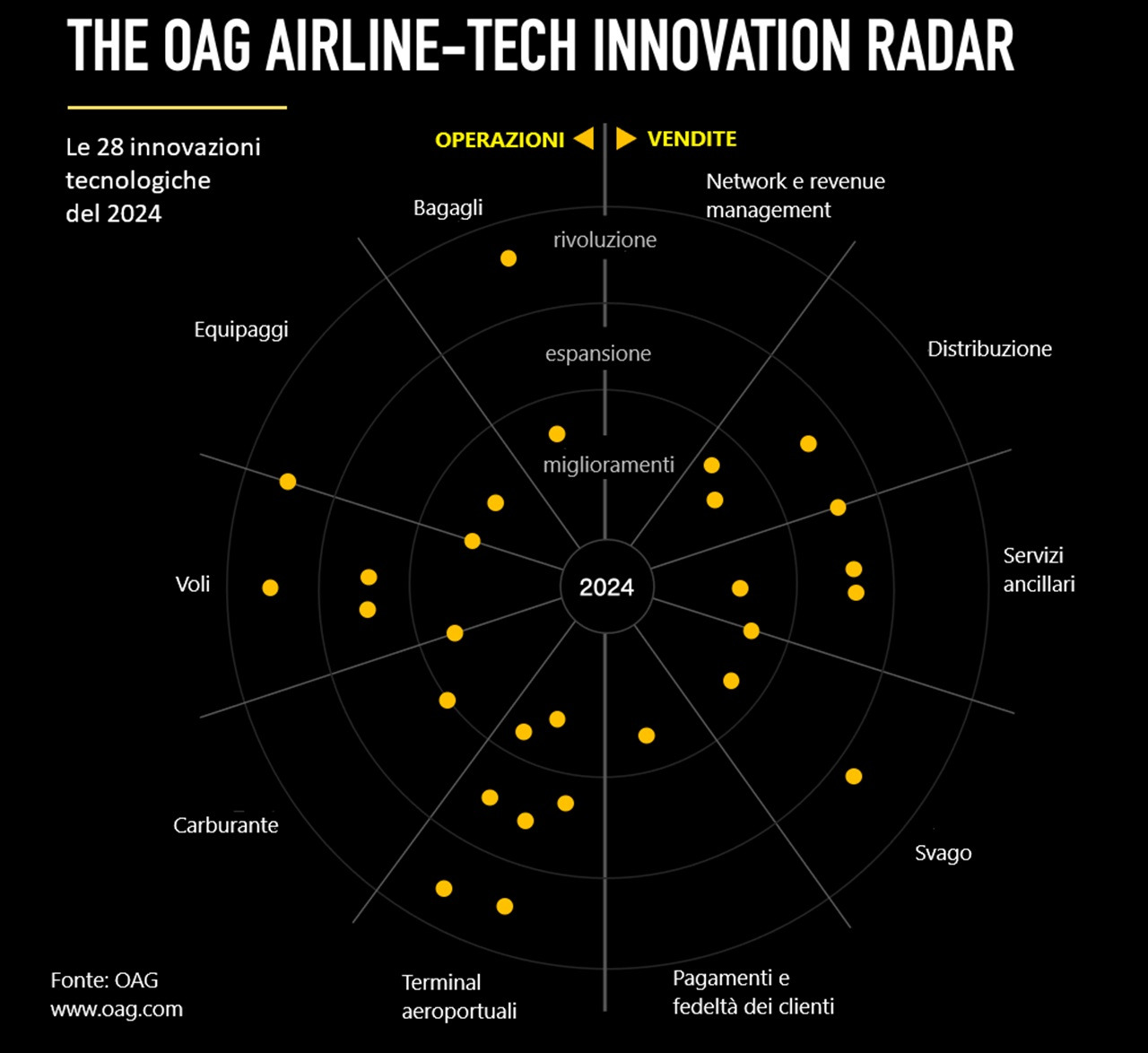 «Lo scorso anno abbiamo monitorato e segnalato da due a cinque novità ogni mese» recita una nota che Oag ha postato sulla propria pagina LinkedIn. «Ci siamo concentrati esclusivamente sulle innovazioni nel trasporto aereo che hanno realmente fatto progredire il settore. I protagonisti? Compagnie, aeroporti e fornitori di tecnologia».