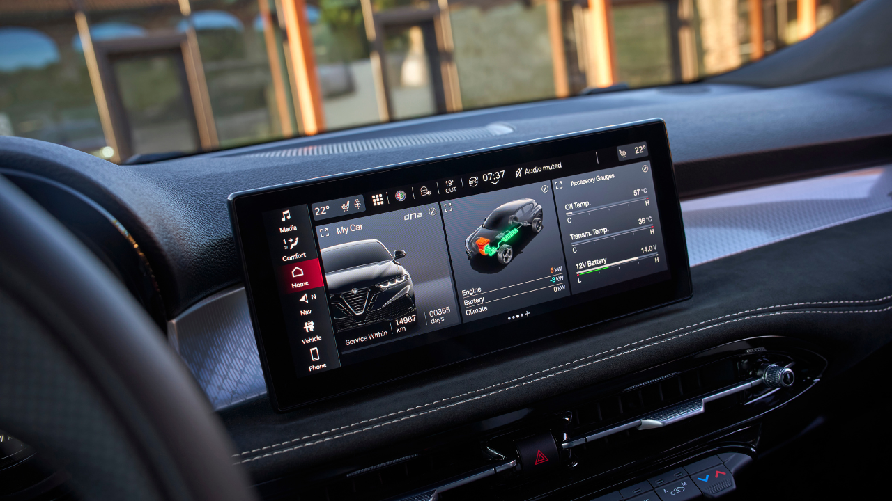 Sul fronte tecnologico, Alfa Romeo conferma la sua filosofia “Human Technology”. L’abitacolo offre una strumentazione digitale a Cannocchiale da 12,3 pollici integrata con il sistema infotainment Alfa Connect da 10,25 pollici, dotato di interfacce multitasking, aggiornamenti OTA e compatibilità wireless con Apple CarPlay e Android Auto.
