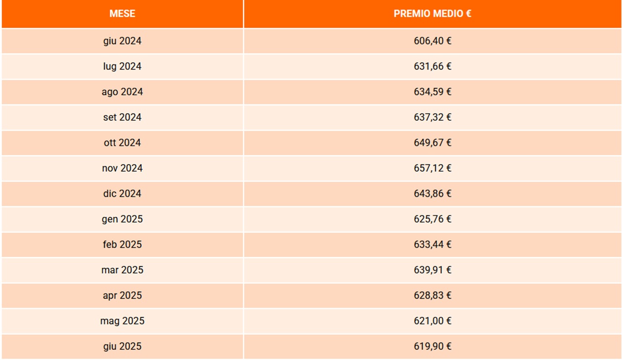 Qui di seguito, la tabella con l’andamento dei premi medi in Italia degli ultimi 13 mesi.