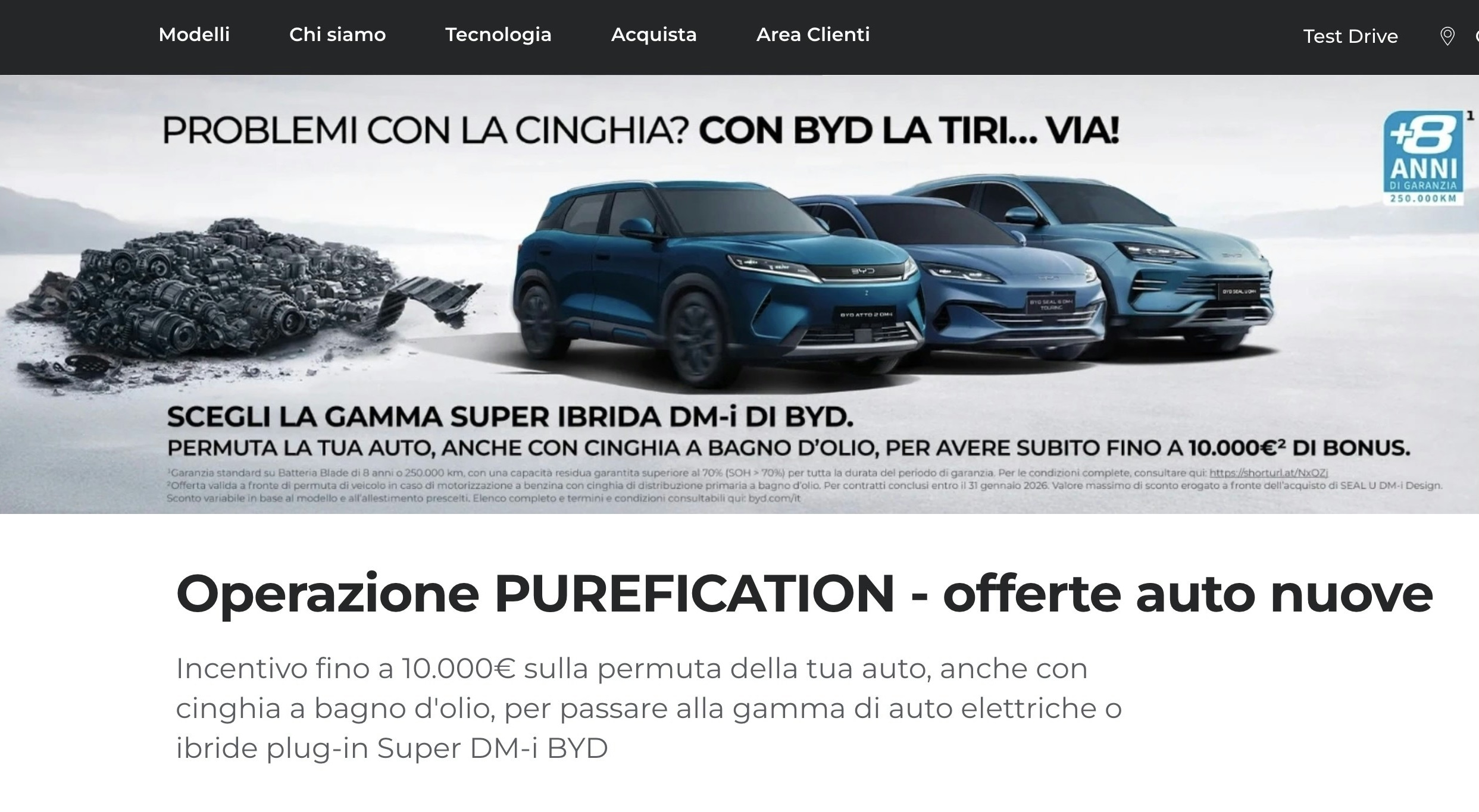 - “Hai la cinghia a bagno d’olio? ci spiace che per te sia sempre blue Monday – scopri i bonus BYD dedicati – Operazione PUREFICATION“