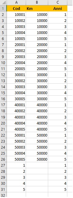 Nel primo foglio (AUTO) si riproduce la seguente tabella.