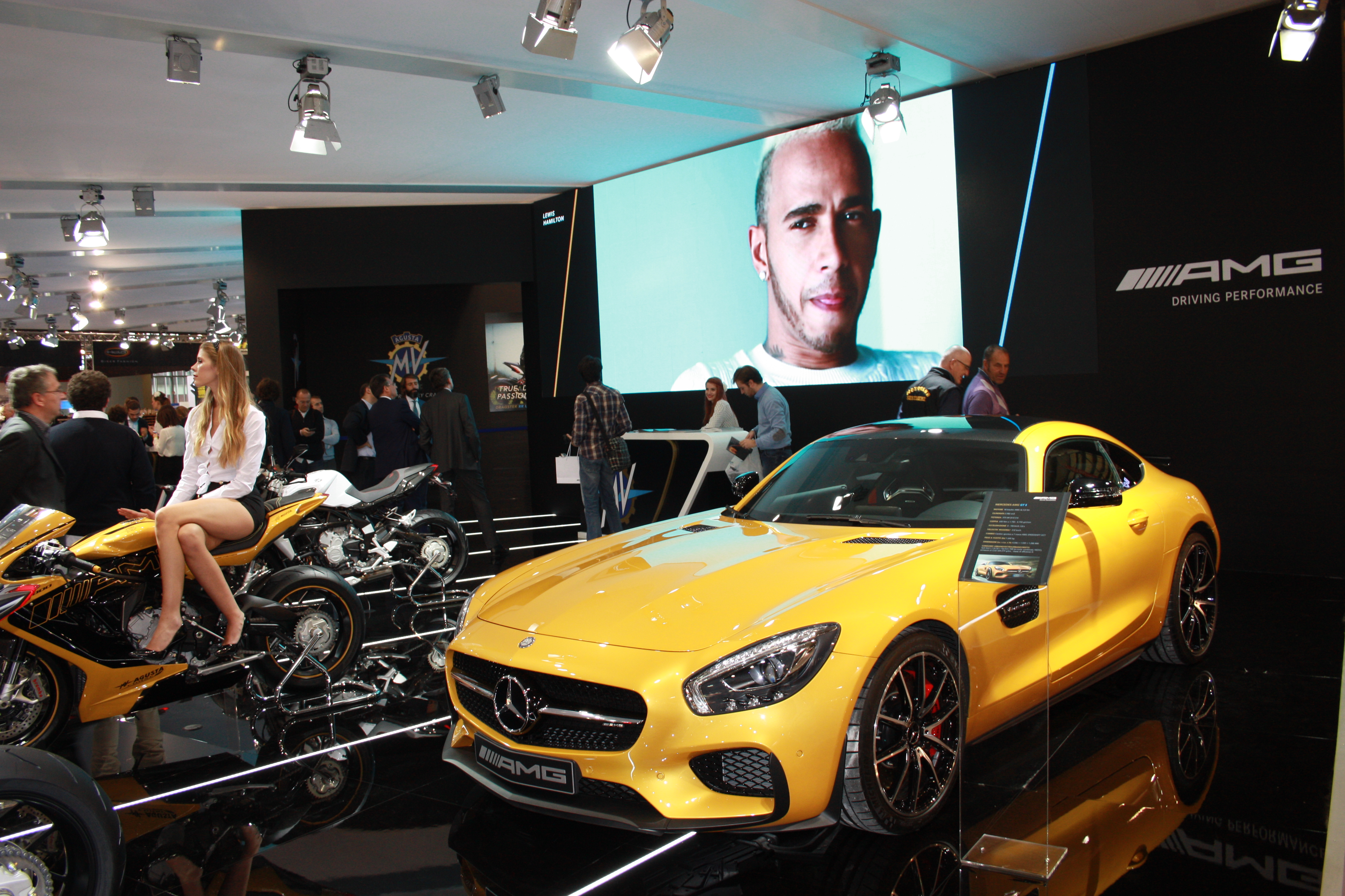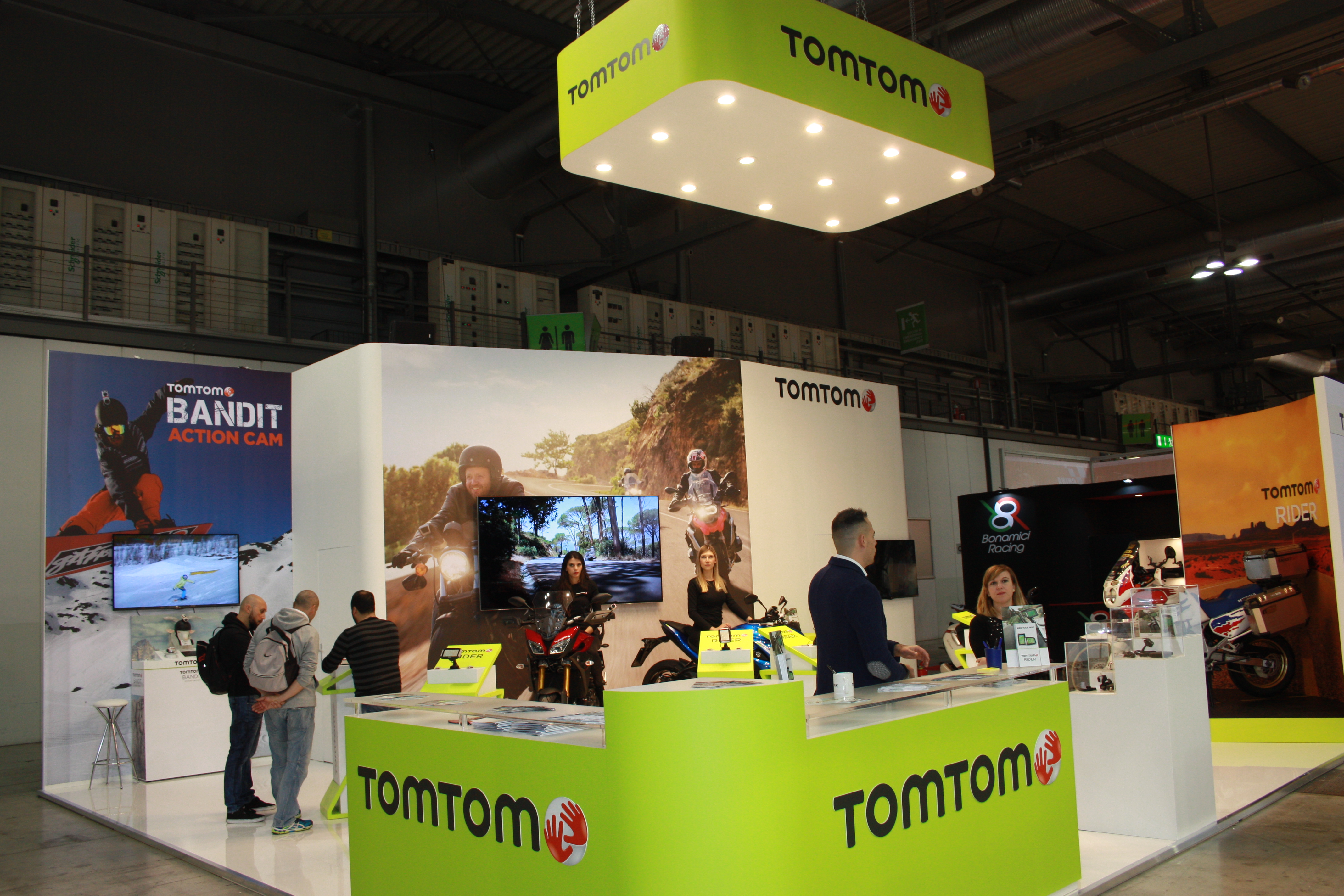 Business, quindi, a Fiera Milano di Rho, ma anche tanto glamour, con le solite bellissime ragazze a cavalcare le novità di settore sempre più nude, le novità intendiamo, come la Yamaha Mt-10, la Scrambler o la XDiavel Ducati, la nuova Triumph Bonneville, la Bmw Scrambler o la Mv Augusta, stand nella quale si vede un’inedita collaborazione con la Mercedes Amg. Presenti in fiera anche tanti servizi quali Tom Tom, nella foto, o la GoPro.