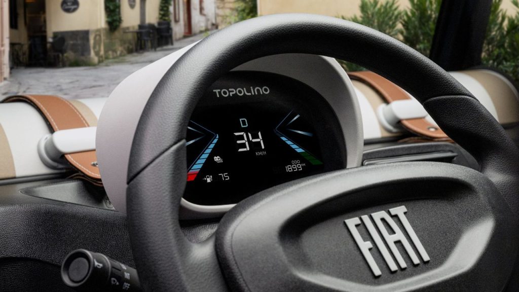 Oltre alla veste cromatica, la Topolino introduce un nuovo quadro strumenti completamente digitale: il display passa da 3,5 a 5,7 pollici, con un’area di visualizzazione totale di 8,3 pollici. La grafica semplificata e la leggibilità migliorata rendono le informazioni più immediate, contribuendo a un’interfaccia più intuitiva e moderna.