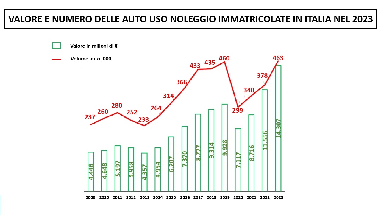 Nel 2023 le immatricolazioni di auto uso noleggio hanno superato i 14 miliardi di euro. Al netto di sconti e promozioni varie. Una cifra mai toccata prima e superiore del 24% a quella dell’anno precedente.