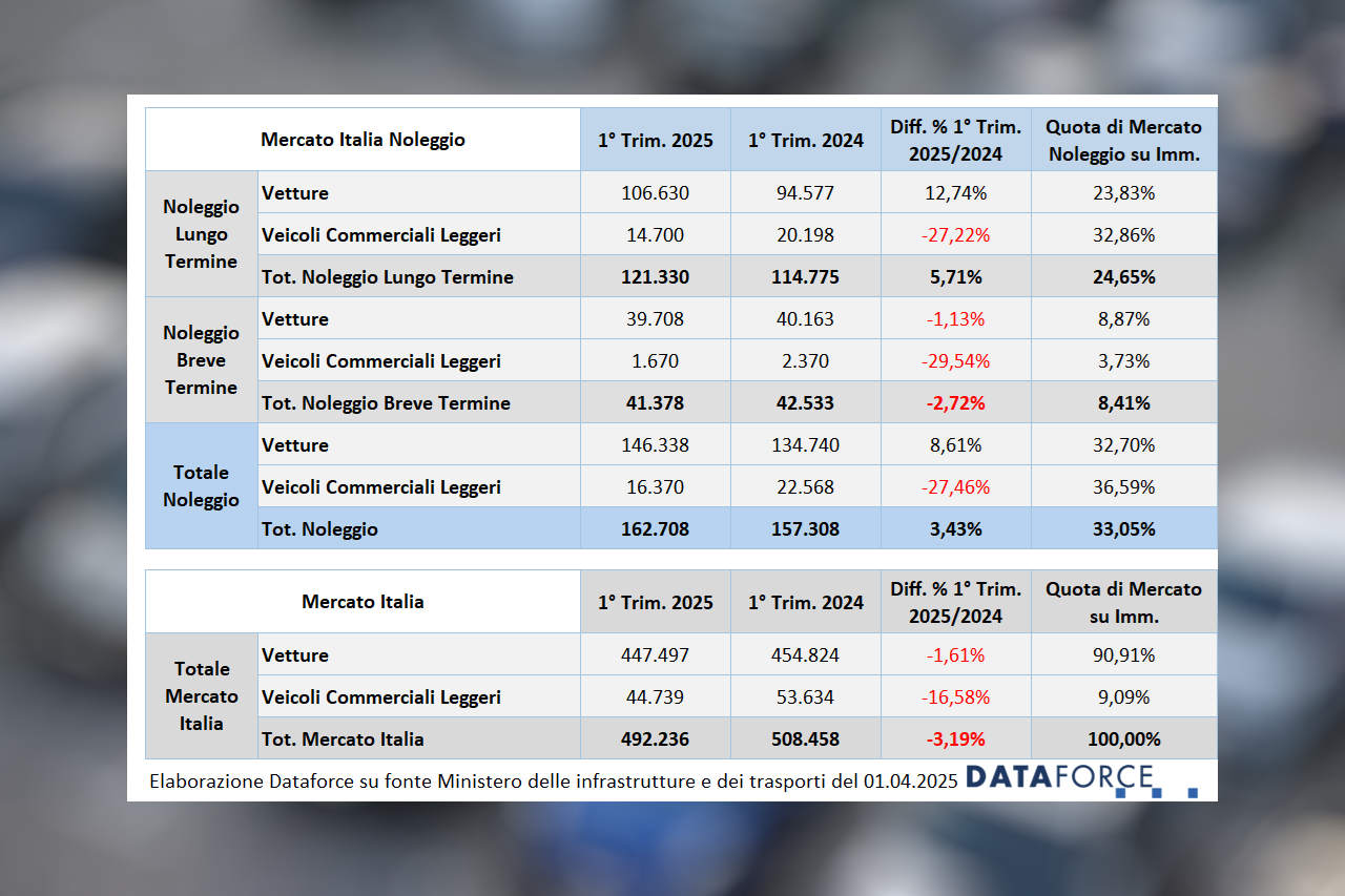 Nel primo trimestre 2025 le immatricolazioni del noleggio auto hanno toccato 162.708 veicoli tra Passenger Cars e Light Commercial Vehicles.