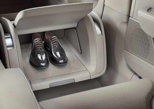 in grado di mantenere le bevande calde o fredde, un poggiapiedi regolabile e un sistema di intrattenimento integrato completo di un ampio Schermo, con in più un frigorifero integrato e bicchieri lavorati a mano prodotti dalla cristalleria svedese Orrefors. Il tutto gestibile da un pannello di controllo a sfioramento posizionato sul sedile posteriore.