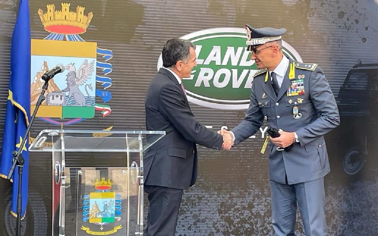 Il Ceo di Jaguar Land Rover Italia, Marco Santucci, ha consegnato le chiavi al Capo di Stato Maggiore della Guardia di Finanza, Generale di Divisione Francesco Greco.
