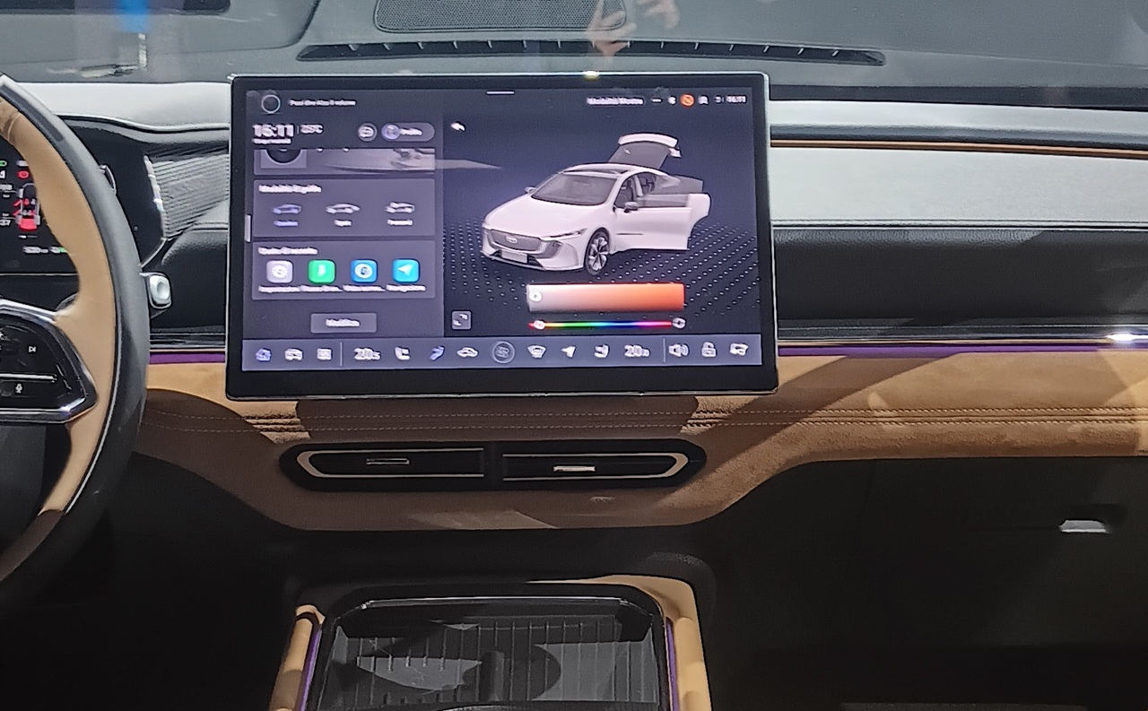 Le informazioni sono suddivise su tre schermi: al centro della plancia un touchscreen personalizzabile da 14,6 pollici mentre il quadro strumenti è digitale da 10,2 pollici. C’è poi un head-up display a realtà aumentata da 50 pollici che nella linea visiva del conducenteproietta informazioni chiave come navigazione e velocità.