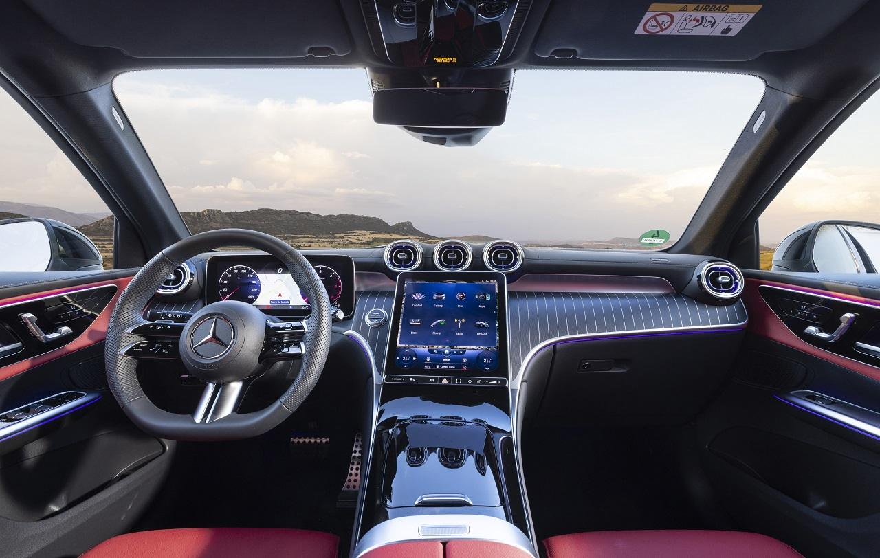 Gli interni? “Moderni e sportivi” recita una nota della casa. E in effetti, la prova della Mercedes GLC ha lasciato proprio questa impressione. Con una plancia portastrumenti che nella sezione superiore ha bocchette tonde appiattite che ricordano le turbine di un aereo. La sezione inferiore ha elementi decorativi.