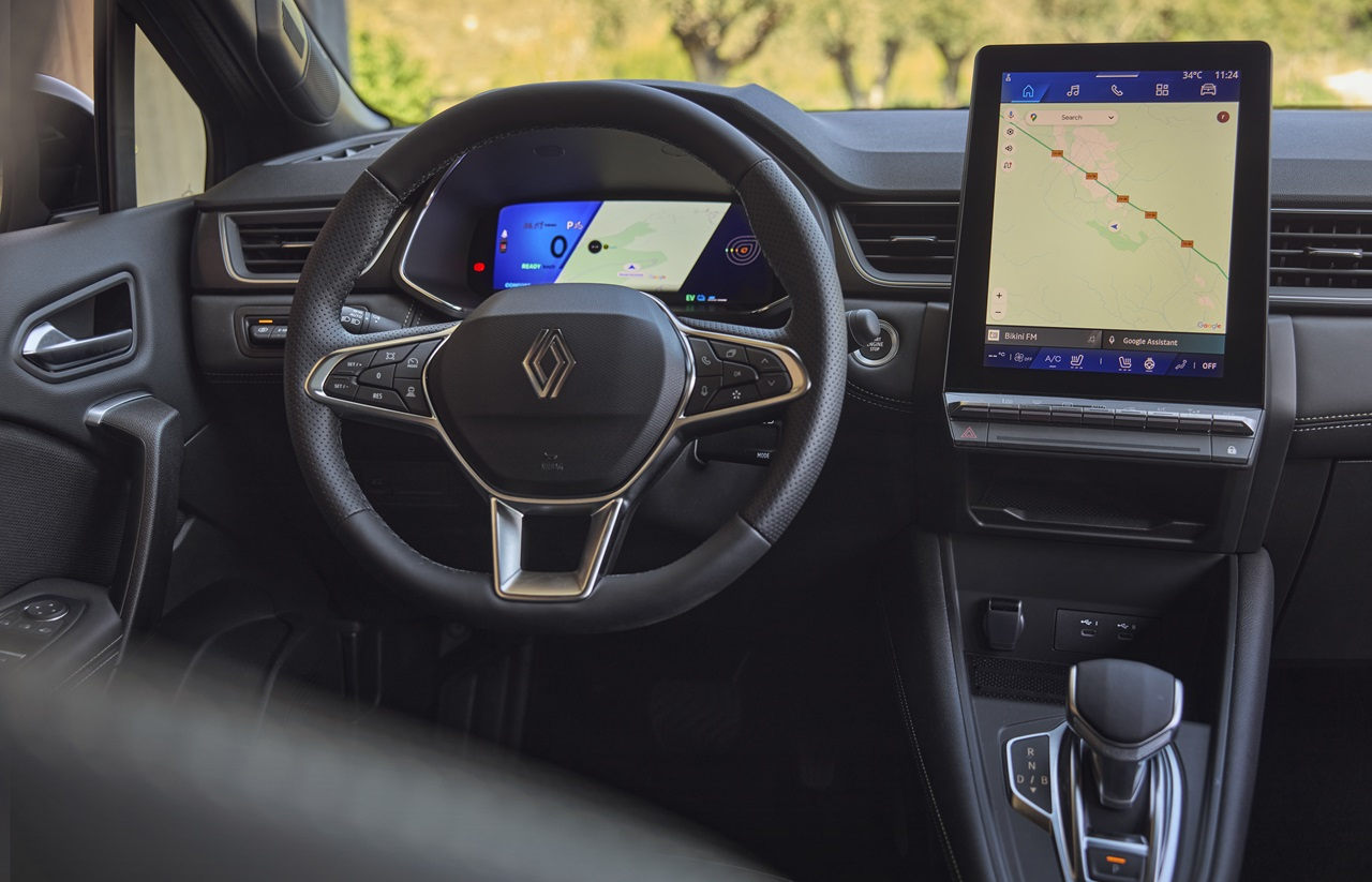 Renault Symbioz offre un equipaggiamento tecnologico che comprende il tetto in vetro opacizzante Solarbay. Il sistema multimediale OpenR Link con Google integrato ha uno touchscreen verticale da 10,4” di serie su tutte le versioni e un driver display da 10,3”.