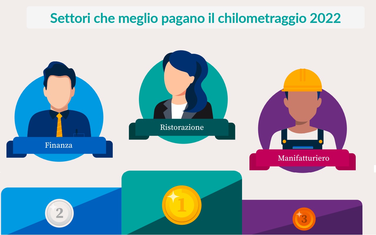 Nel 2022, in Italia, il prezzo minimo è stato di 0,10 euro a chilometro, mentre il massimo è stato di 0,76 euro. Chi paga di più? Il settore della ristorazione. Percorrenza media: 107 km per dipendente
