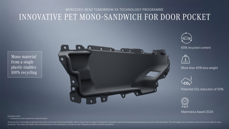 Di recente, Mercedes‑Benz ha presentato il programma tecnologico Tomorrow XX come motore di innovazione a sostegno degli obiettivi di sostenibilità dell’azienda. Il programma che sfrutta lo stesso approccio olistico e multidisciplinare dimostrato con successo con VISION EQXX e CONCEPT AMG GT XX, ora si estende a tutto il portafoglio prodotti. Dinamico e di vasta portata, Tomorrow XX si concentra sulla decarbonizzazione, l’uso delle risorse e la circolarità dall’inizio della fase di progettazione fino alla fine della vita di un veicolo. Per fornire una chiave di lettura più semplice, possiamo affermare che il suddetto programma si occuperà di progettare attraverso materiali a bassa impronta carbonica, col fine di inquinare il meno possibile durate tutto il ciclo di vita di ogni singolo pezzo.