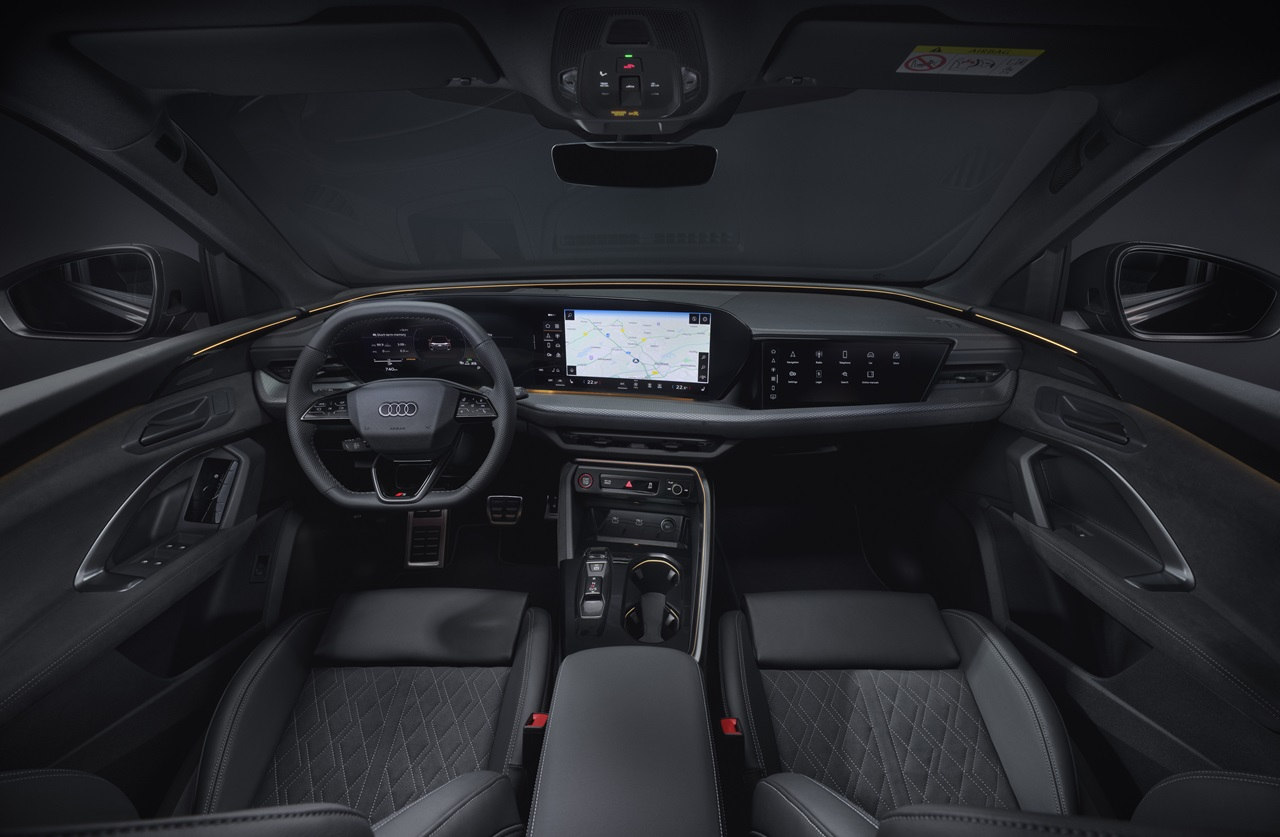 La plancia della vettura è caratterizzata dall’Audi Digital Stage. È un palcoscenico digitale dei quattro anelli composto dall’Audi virtual cockpit da 11,9 pollici e dal display curvo da 14,5 pollici del sistema MMI oltre che dallo schermo da 10,9 pollici dedicato al passeggero.