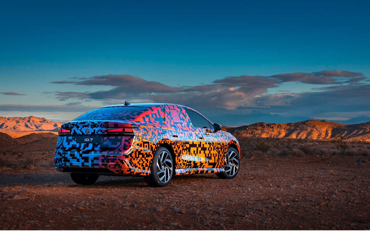 Al Ces di Las Vegas, Volkswagen mostrerà l’intelligenza della ID.7 in un modo speciale. La berlina camuffata ha un design digitale con una verniciatura unica, che illumina l’auto in modo interattivo.