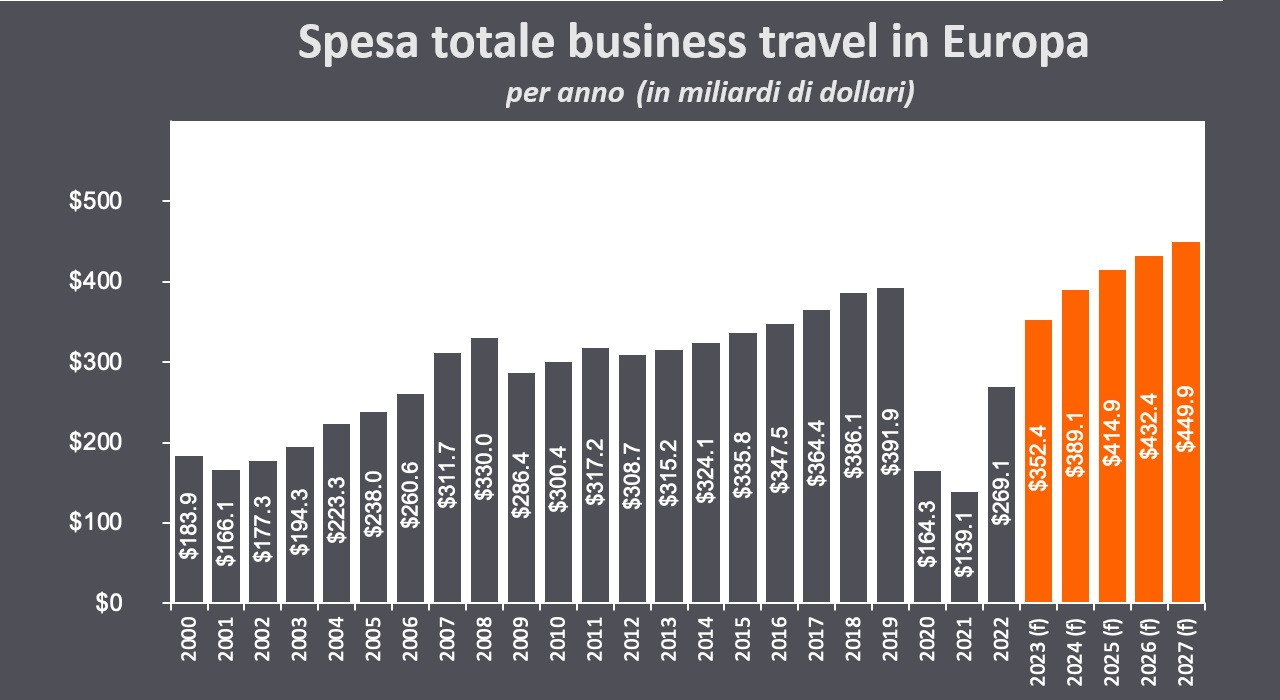 In base alle previsioni dell’associazione del business travel, si tratta di un recupero più lento rispetto a quello previsto a livello globale. Nel mondo la spesa dei viaggi d’affari dovrebbe raggiungere i 1.500 miliardi nel 2024 e crescere fino a quasi 1.800 miliardi entro il 2027.