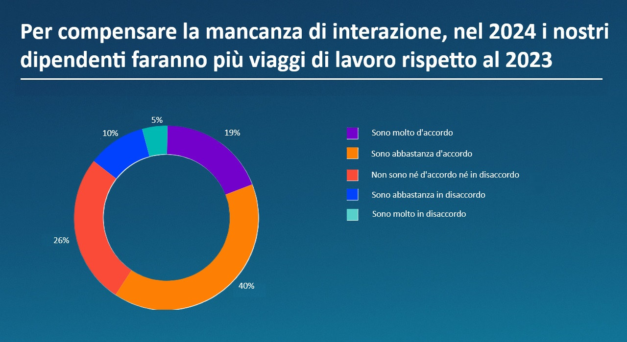 Riguardo al 2024, oltre l’80% degli intervistati ha dichiarato che effettuerà almeno tre viaggi di lavoro mentre quasi la metà di loro ha affermato che il numero sarà di sei o più.