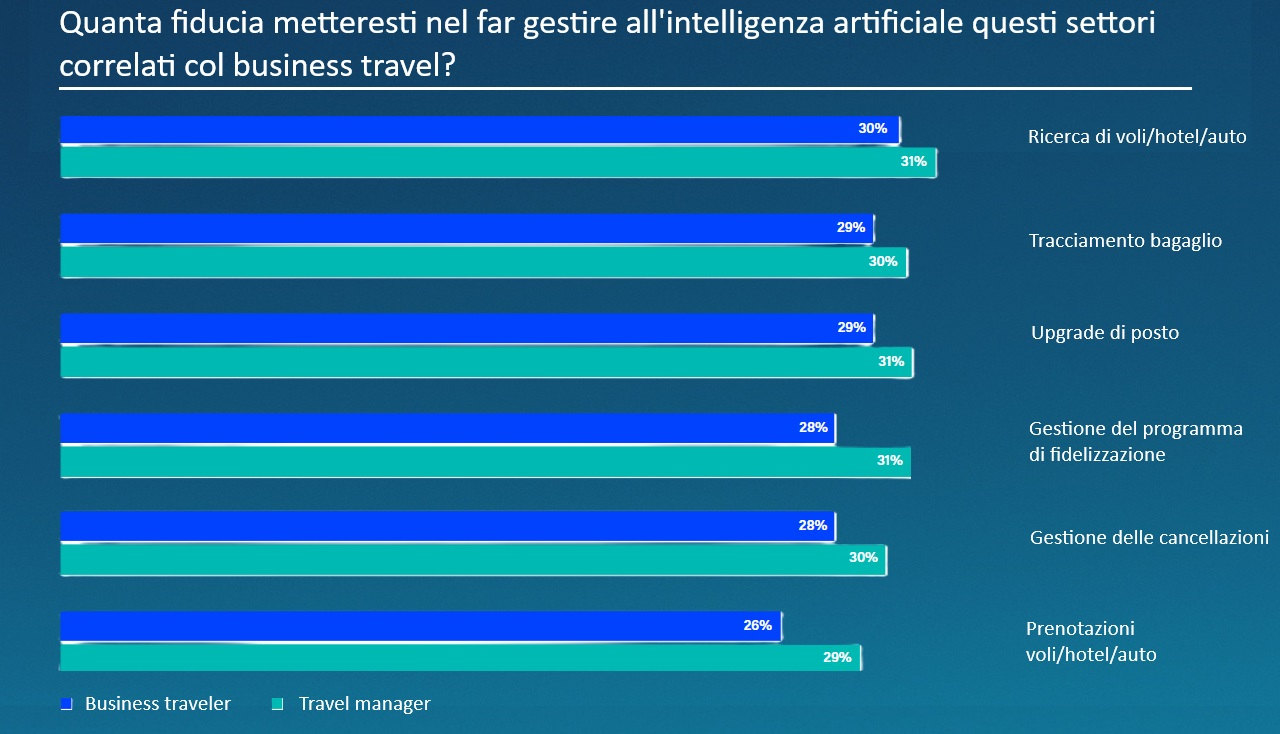Il rapporto “Lo stato dei viaggi aziendali e le spese 2024: i nuovi confini nell’era dell’intelligenza artificiale” mostra proprio questo. A condurre la ricerca, Navan e Skift che hanno condotto un sondaggio tra 800 viaggiatori e 700 travel manager per raccogliere opinioni e approfondimenti.
