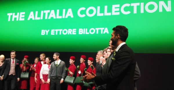 Ma torniamo alle nuove divise, che gli equipaggi di Alitalia indosseranno dal prossimo luglio, disegnate dallo stilista milanese Ettore Bilotta, anch’egli presente all’evento milanese, per ricevere il meritato applauso dei partecipanti e dalle hostess e steward che si sono prestati a questa sfilata con atmosfere degli anni ’50 e ’60, con una marcata essenza del Made in Italy: confezionate con tessuti provenienti dalla Toscana e con seta lavorata a Como quelle femminili, quelle per il personale maschile realizzate in Puglia, gli accessori in pelle a Napoli e le scarpe prodotte nelle Marche. Le nuove divise verranno gradualmente distribuite ai 5.700 dipendenti Alitalia, incluso il personale al check-in e quello nelle lounge, dai primi di luglio, ed è previsto anche un restyling delle divise per i piloti e il personale operativo.