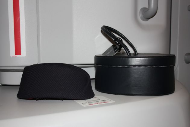 - Oltre a cuscini e coperte (il letto viene comunque fatto dal personale di bordo con lenzuola fresche) la chicca di un pigiama “blue navy” elegantissimo per Lui (l nostro viaggiatore frequente, in questo caso è maschio…)