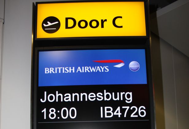 Da Londra partenza alle 18.00 e arrivo in orario alle 6.55 del giorno dopo a Johannesburg