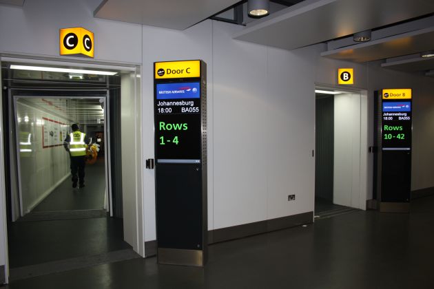 Finger dedicati per i diversi piani e per le diverse classi come si può vedere anche dalle foto qui allegate. I primi ad essere imbarcati i passeggeri di First, di Business e i possessori di carte Executive Club.