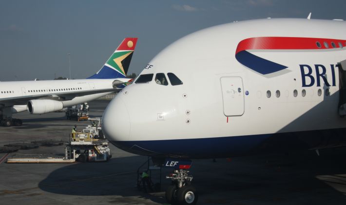 In volo da Londra Heathrow a Johannesburg sulla First di British Airways, una delle quattro classi del colosso dei cieli, l’A380-800, di cui ne ha otto in flotta, e con i quali vola su Los Angeles, Washington, San Francisco, Hong Kong, Singapore e, appunto, Johannesburg.